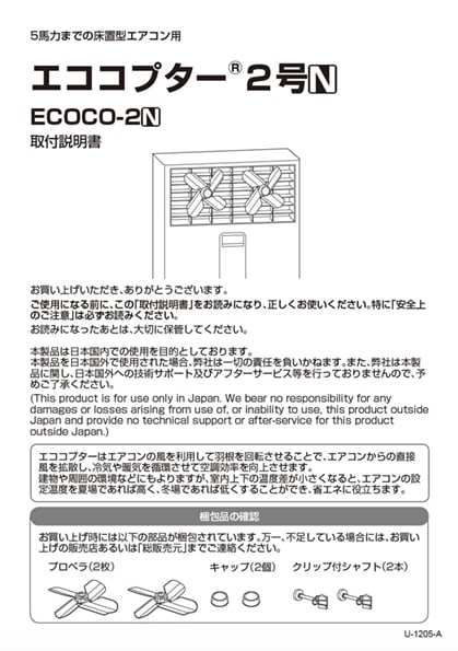 エアコンの風でファンが回転するので、電気工事は不要で電気代もゼロです。この構造は弊社によって発明されたサスティナブルな製品です。